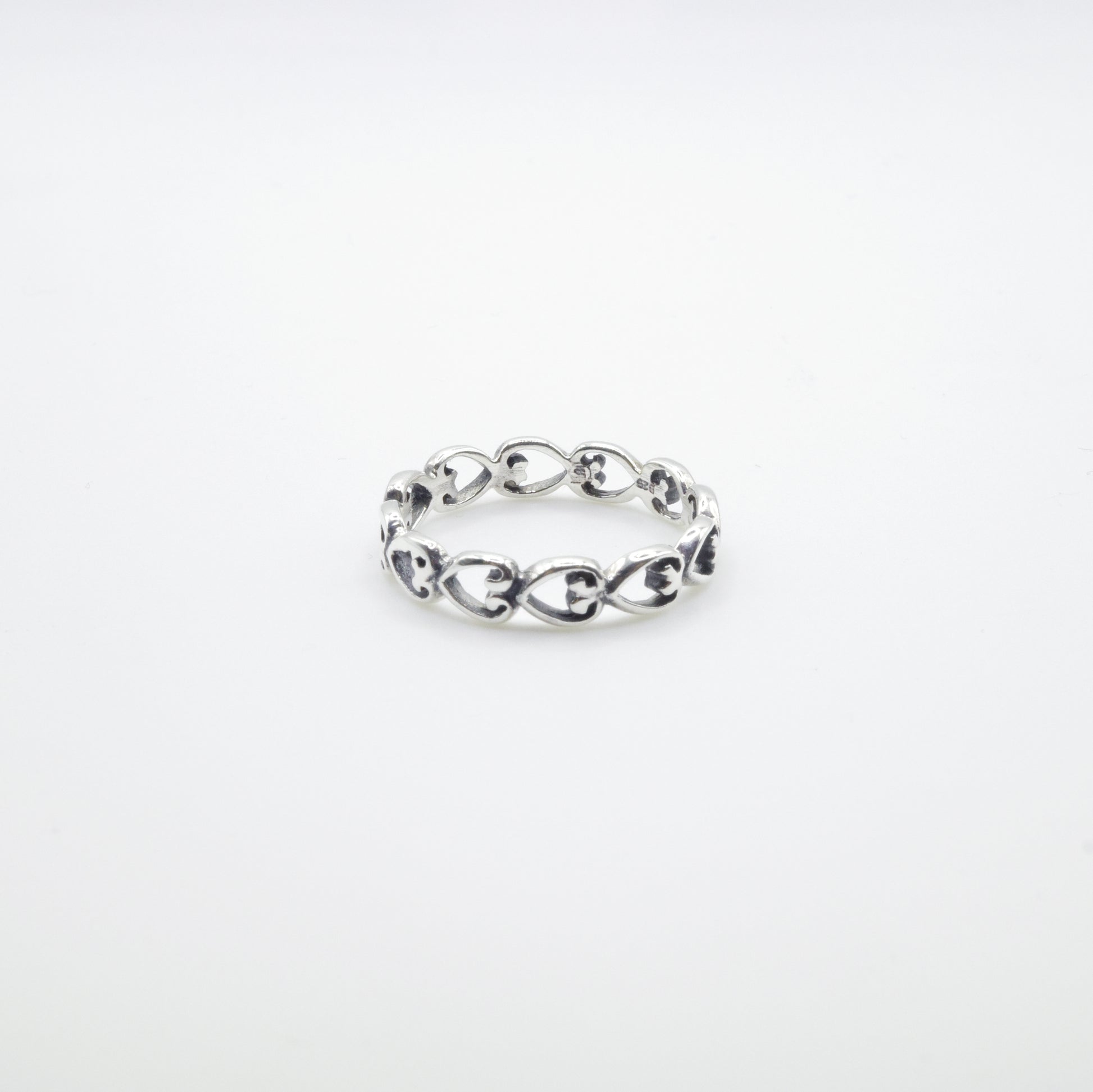 Playful yet refined, the Hearts Ring combines polished silver with a repeating heart pattern. A subtle symbol of affection that’s perfect for daily wear.